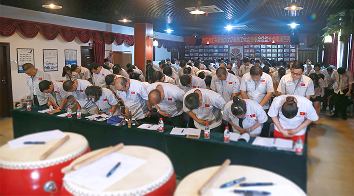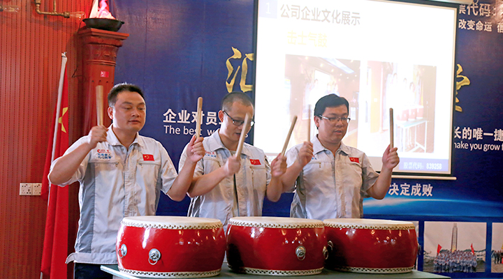 會議由行政部經理袁侃主持。會議在激昂的《匯興之歌——用心智造世界》 拉開帷幕,全體參會人員向企業核心價值觀“孝道、商道、人道”行三鞠躬禮,宣讀企業愿景——成為全球領先的整廠自動化系統解決方案提供商,企業使命——做受尊敬的好人、造受尊敬的產品、辦受尊敬的企業、建受尊敬的平臺,企業精神——用情做人、用心做事,團隊精神——忠誠團結、勤奮進取。隨后,匯興智造干部職員代表鐘建輝、彭大海,鄭建團共同敲響士氣鼓,鼓舞匯興智造牢記初心,砥礪前行。