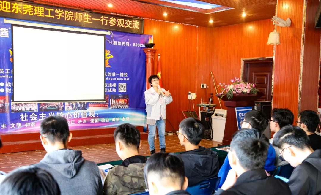 隨后,蔣明華在公司大會議室向師生們詳細(xì)介紹了公司的發(fā)展歷程、產(chǎn)品特點(diǎn)、核心優(yōu)勢、企業(yè)文化、人力資源、員工晉升通道等方面的概況,并熱忱歡迎東莞理工學(xué)院學(xué)子來公司參觀,更歡迎畢業(yè)的大學(xué)生來公司就業(yè)。